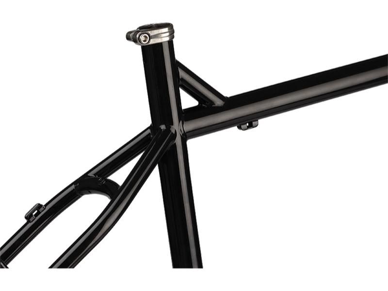 Braze-ons 51mm disc tabs, rear brake toptube housing stops, seatstay mounted disc housing guides, fender eyelets front and rear and dual water bottle mounts